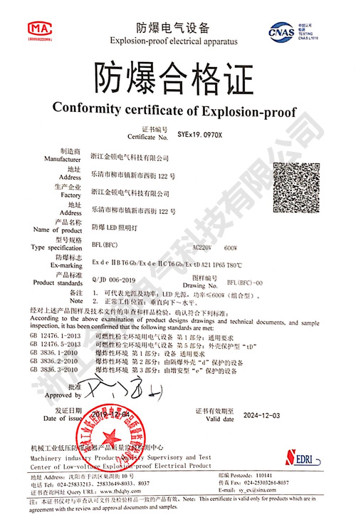 防爆配電裝置防爆合格證