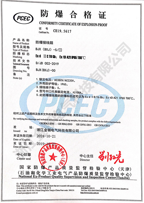 防爆接線箱防爆合格證