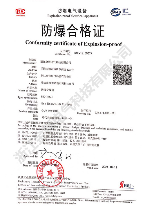 防爆穿線盒防爆合格證
